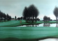 デペルトの大作です。静寂の中でグリーンが心に沁みるゴルフ場を描いた秀作です。遠くにはうっすらと山が聳え、そこから壮大に広がるゴルフ場。ここはいつもプレーするお気に入りの場所。でも今は静かに眠っています。すべてを吸い込んでしまう池も穏やかです。デペルトはそんな心安らげる時と空間を演出してくれました。その力には脱帽です。素晴らしい作品です。じっくりと堪能していただけます。