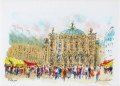 自由闊達な繊細な線を駆使し、オペラ座を描いています。 華やいだ人々の姿もいいですね。